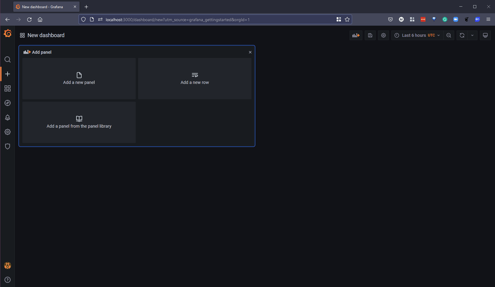 Quay lại trang chủ và tìm tuỳ chọn "Create your first dashboard" chọn mục "Add a new panel"