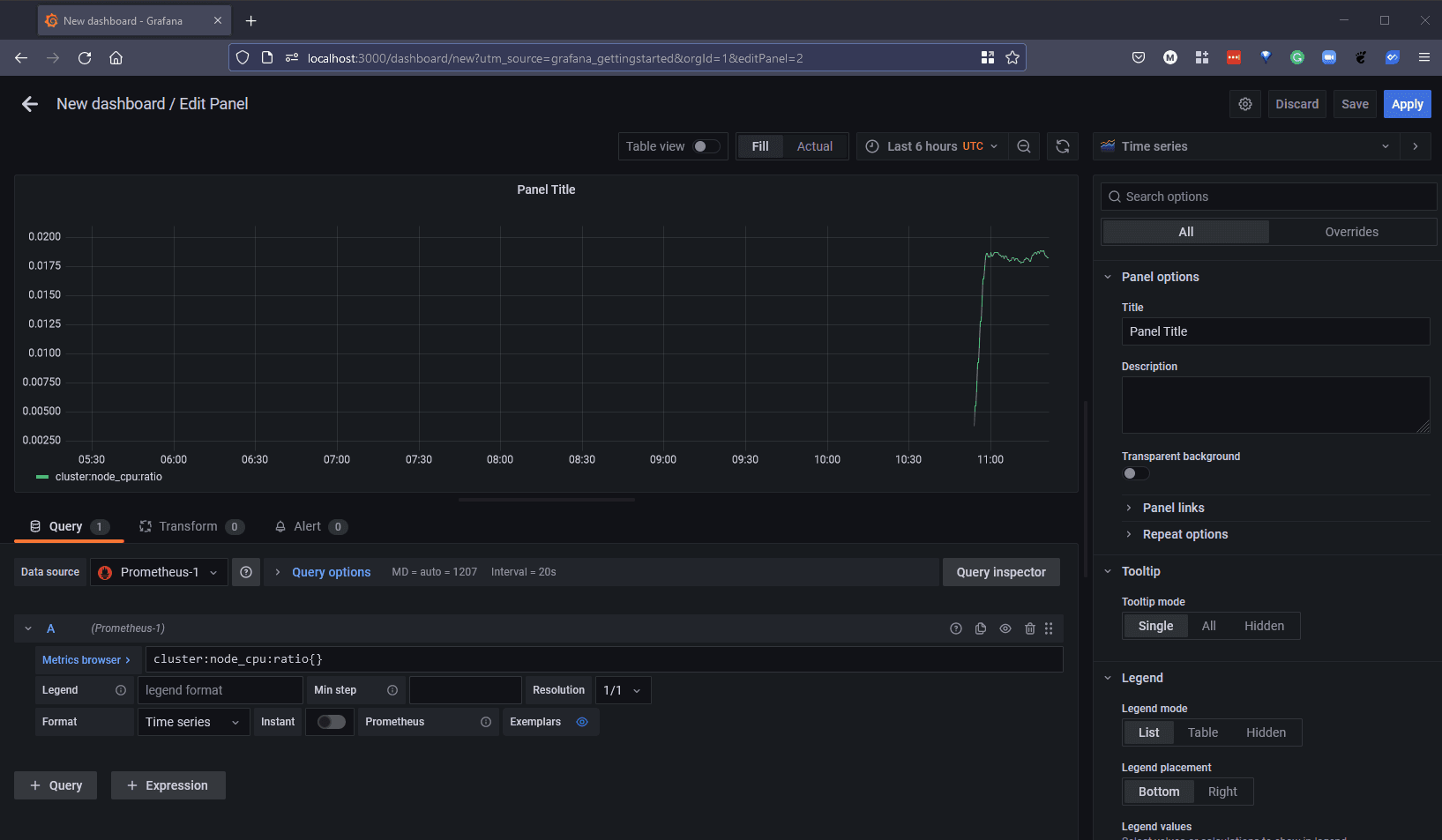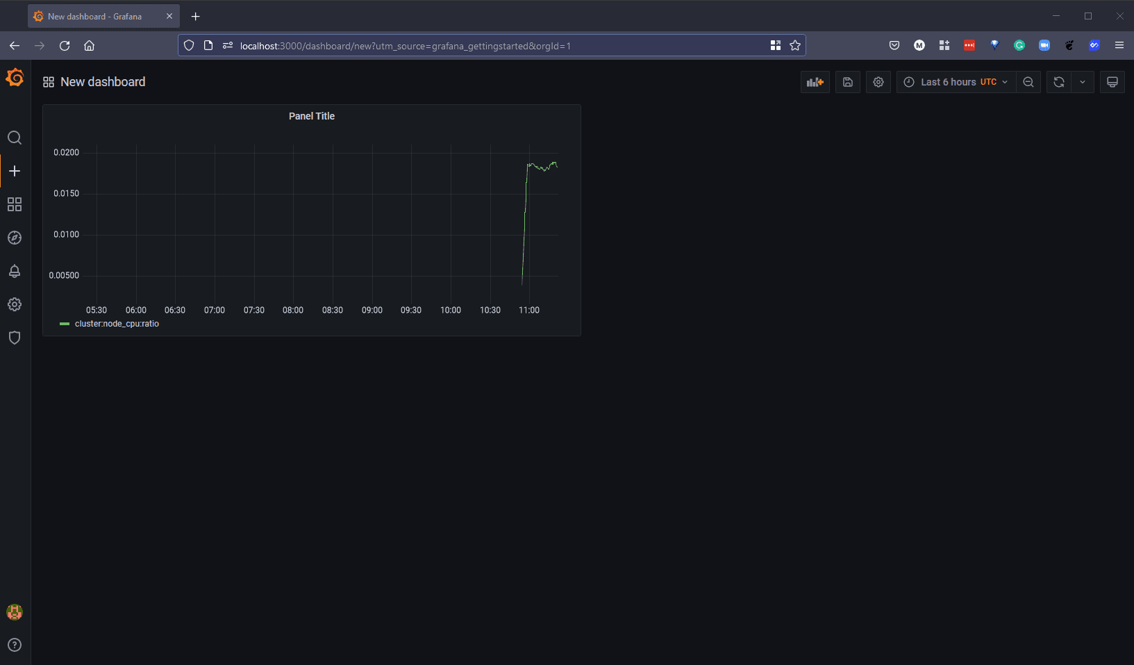 For the demo I am going to find a metric that gives us some output around our system resources, cluster:node_cpu:ratio{} gives us some detail on the nodes in our cluster and proves that this integration is working.