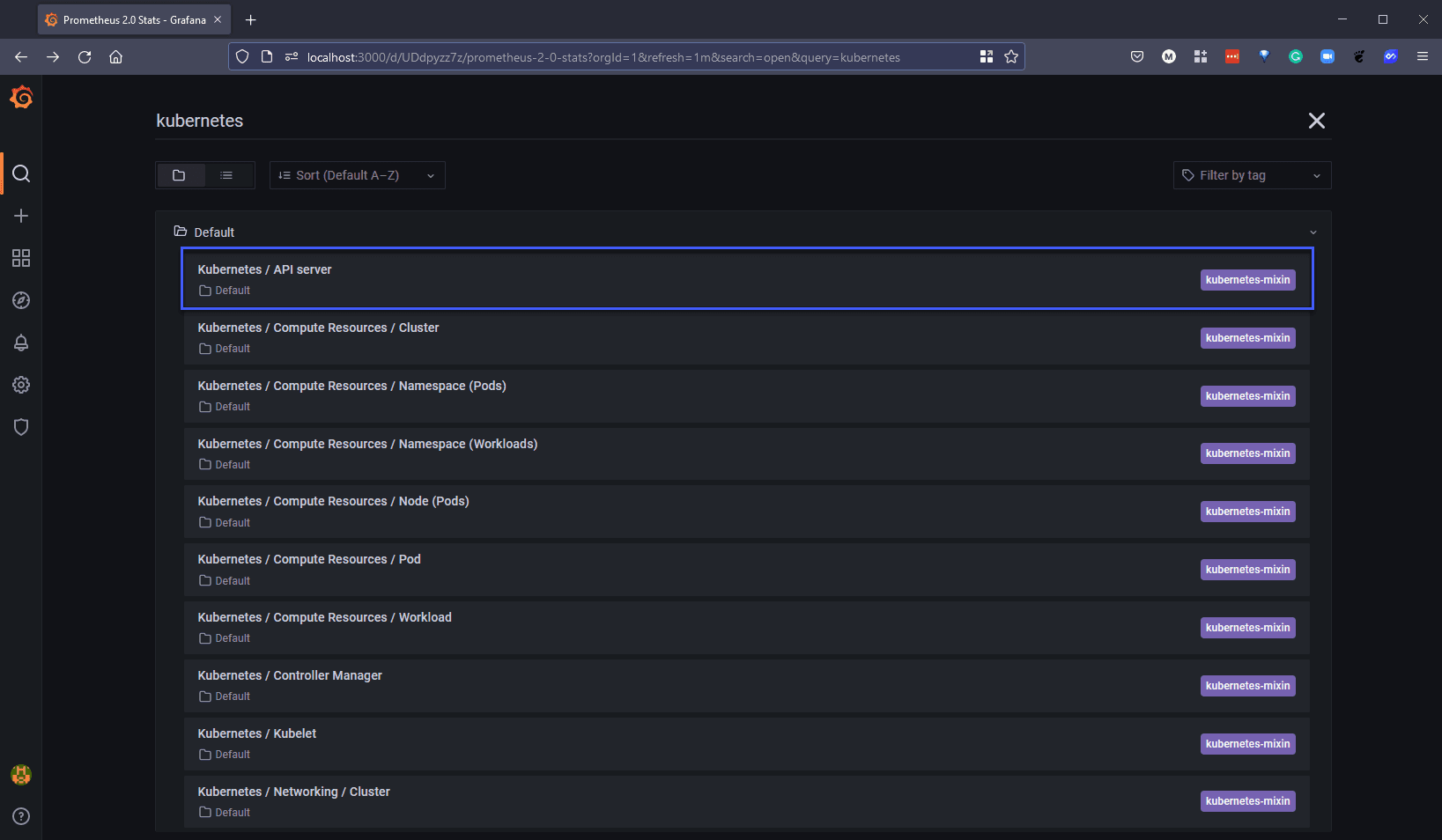 If we search Kubernetes we will see a long list of pre-built dashboards that we can choose from.