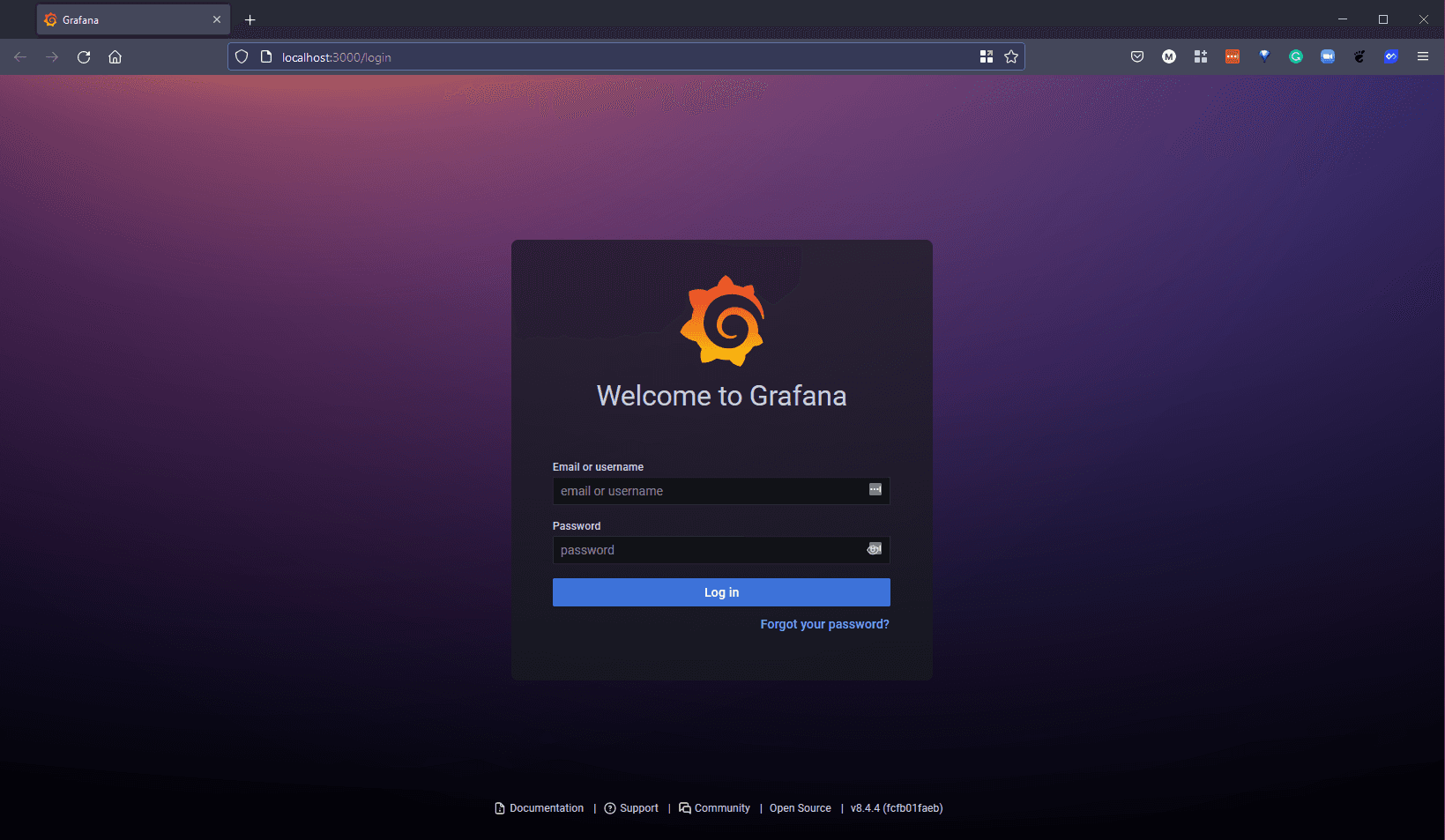 Mở trình duyệt và đi tới http://localhost:3000, bạn sẽ cần nhập tên người dùng và mật khẩu.